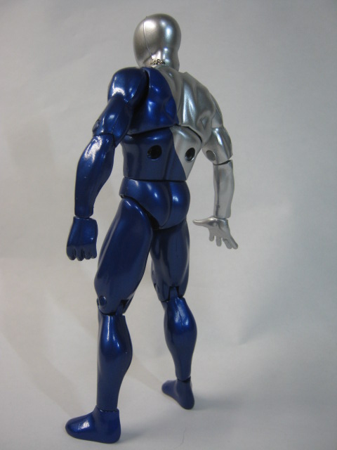 可動範囲はそこそこ。関節がやや緩いのと、肩が干渉しがちですが15年以上前の玩具にしては凄く動いていると思います。マッチョ体系で上半身が重いのと、足首が回転しかしないので割と倒れやすいのが難点。PSのゲームとか、ありましたね。