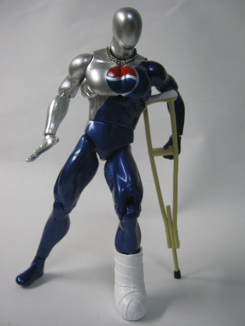 松葉杖と包帯で怪我時を再現。この姿はボトルキャップにもなっていましたね。よくひどい目に合っていたのでこの姿はイメージにピッタリ。