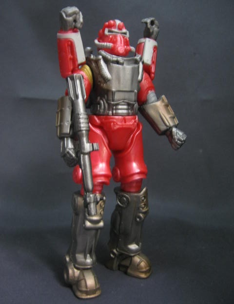 ゲームではもっと塗装は細かかったのですが、白の塗装や星やヌカガールのプリントなどがザックリと省略されてしまい、後ろから見ると真っ赤で物足りない。他のパワーアーマーよりも塗装が細かかった分、その省略っぷりが目立ちます。