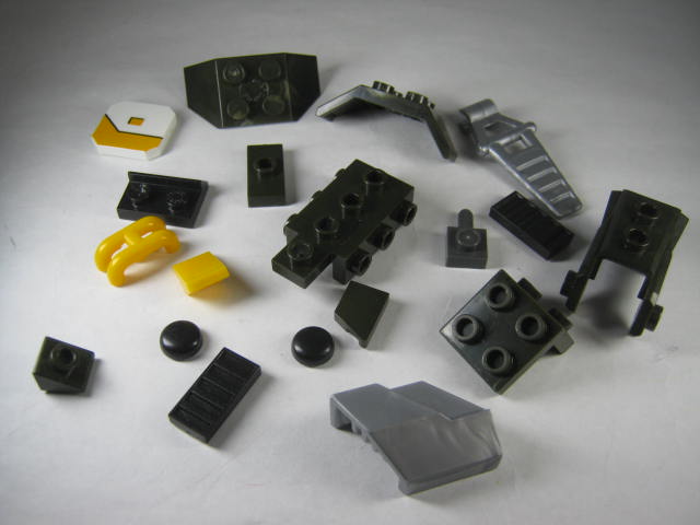 パーツ構造的にはLEGOと大差が無く、ポッチ上部にロゴが無いくらいでしょうか。しかしレゴには存在しないであろう独自の形状のパーツも多いのが面白い。色が暗くて分かり辛いですが、ダークグリーンのパーツは銀?のグラデーションになっているモノも存在します。