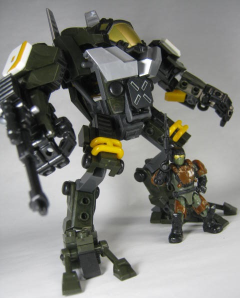 正面HALO世界の中の有人二足歩行型兵器「サイクロプス」の1種。どうやらサイクロプスはHALO本編での活躍は無い?様で、外伝的扱いの「HALO WAR」シリーズに登場する兵器の様です。その中の玩具オリジナルバリエーション機体みたいな感じの様です。
