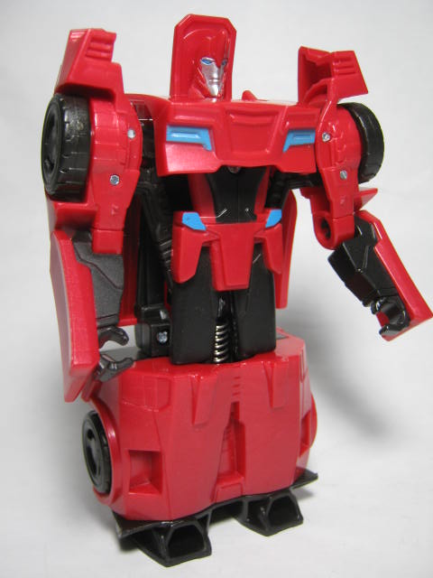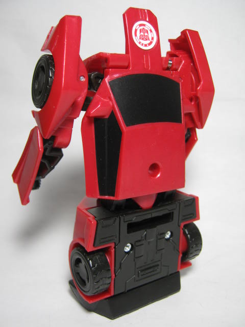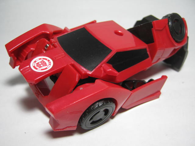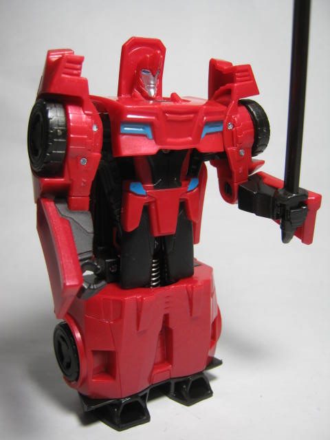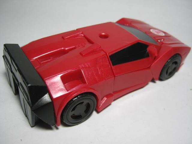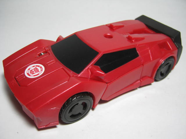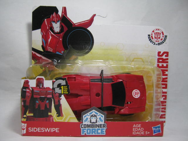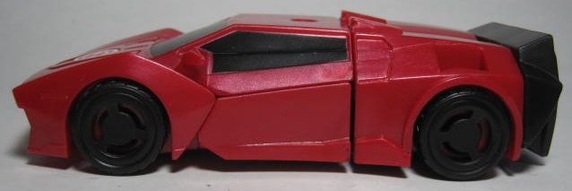 ビークルモード赤いスポーツカーに変形。サイドスワイプのワンステップチェンジャーは国内でも出た所謂ジャキッと変形のモノと、シーズン2期に出たモノが過去にあり、今回で3度目の登場になります。特徴的な