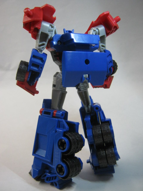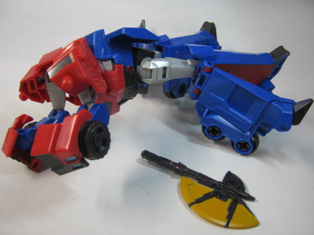 オプティマスの巨大感が無いのも特徴。低価格で手に入る喜びと同時に他のキャラと並べ辛いというのが悩ましい。何故か