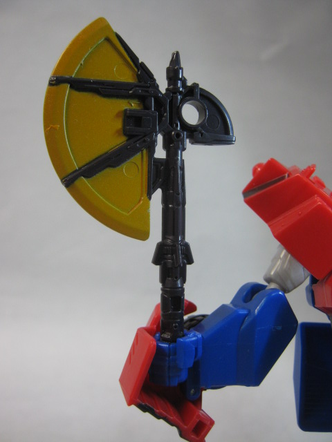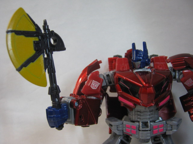 「TRANSFORMERS WAR FOR CYBERTRON」のオプティマスが似たような斧を使っていたのでユナイテッドのオプティマスに持たせてみる。ちょっと短くてモノ足らない感じ。