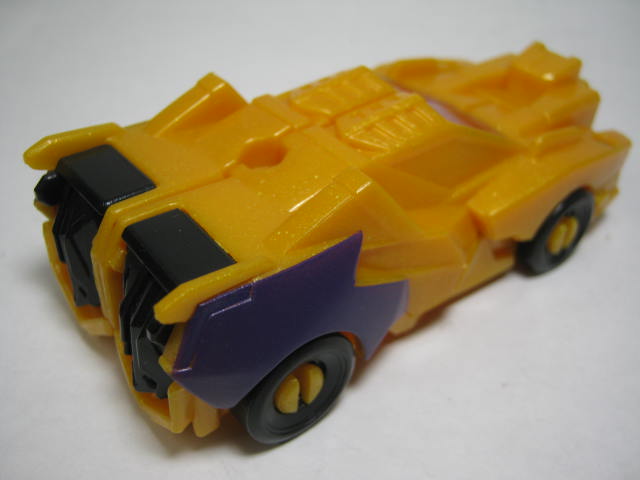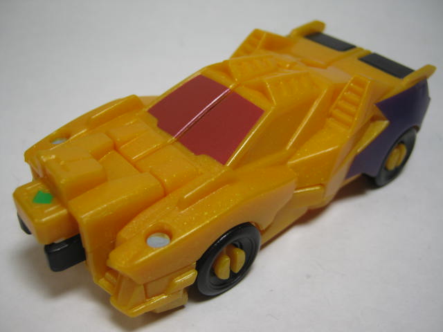 コチラはブレークダウン風のビークルモード。先述の通り、ワイルドブレークと入れ替わっています。ワイルドブレークは新規キャラでしたが、ブレークダウンをモチーフにしていたんですかね。ドラッグストリップもRID本編ではスポーツカーに変形していたので、ワイルドブレークよりも劇中寄りっちゃ寄り。先端が合体ジョイントになっているので見た目がちょっと悪いですが。あとタイヤも軸が見えるはめ込み式で見栄えが良くないかなー。