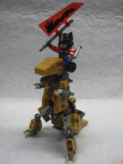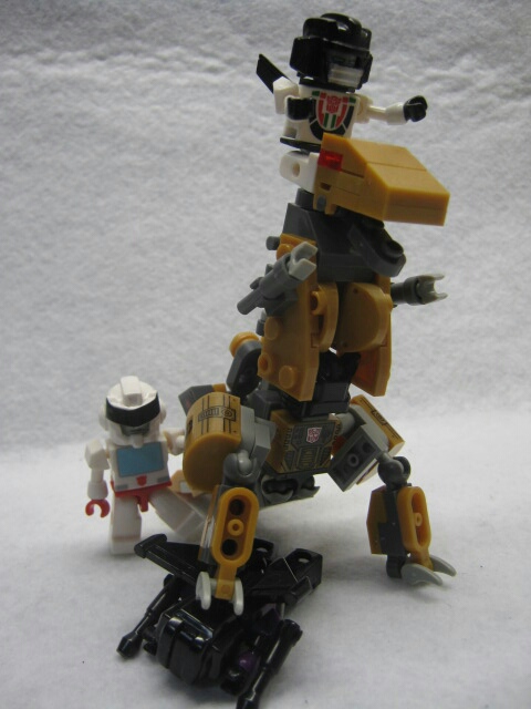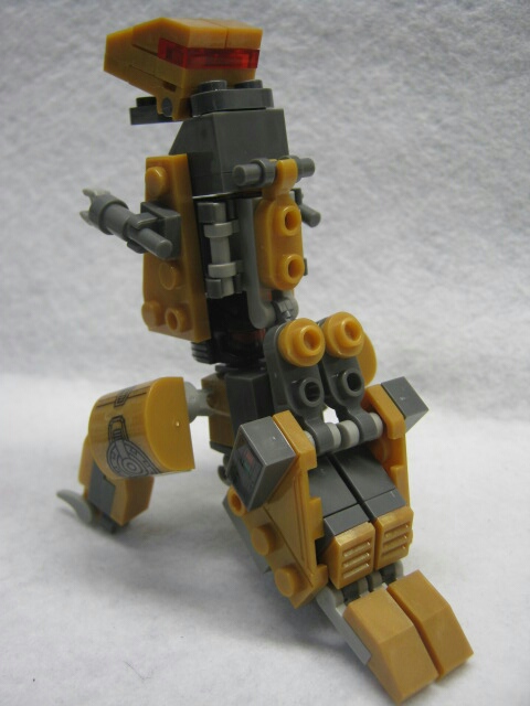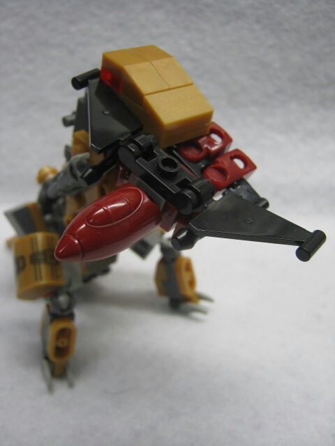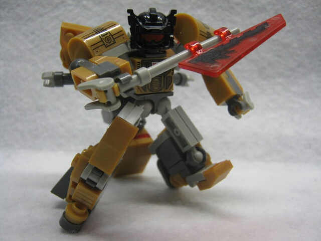 パーツを組み立てれば完成!ハウンド同様、クレオンの胴体をベースにパーツを付けた見た目をしています。G1グリムロックが銀のボディだったのに対し、コチラは実写の玩具を意識してか、金色になっています。背中のパーツがちょっと大き過ぎて倒れやすいのが難点。