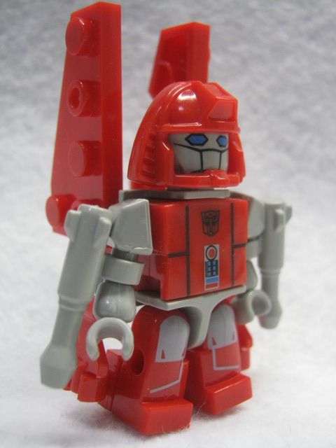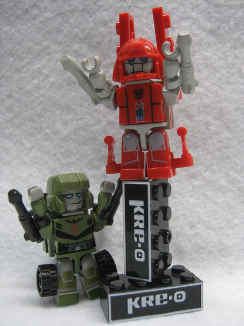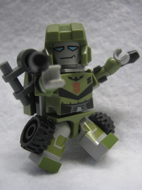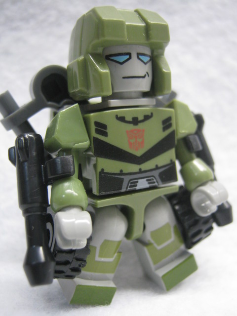 背中にパーツを付ける事でG1玩具の特徴的な胴体を再現。ちょっと倒れやすいのがタマにキズ。二弾からは過去のクレオンと違い脚にもプリントが追加された他、全員ボディの模様も隠れない様になりました。