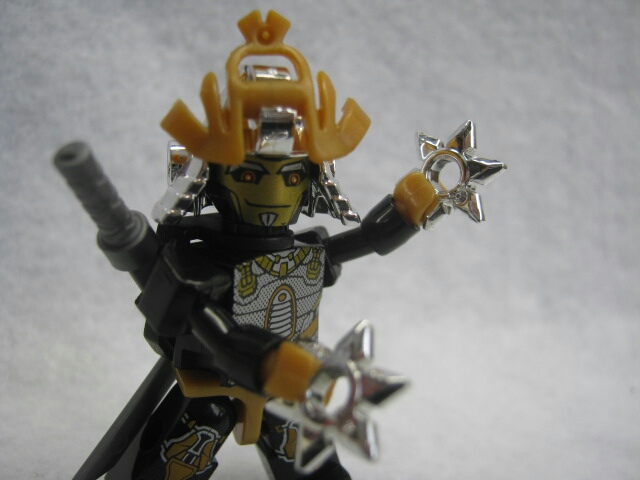 説明書によると手裏剣を持たせるのがデフォの模様。侍なのに忍者の武器・・・。怪しいJapanテイストが漂って参りました。メッキ加工が綺麗です。ちっちゃいので無くさない様に。
