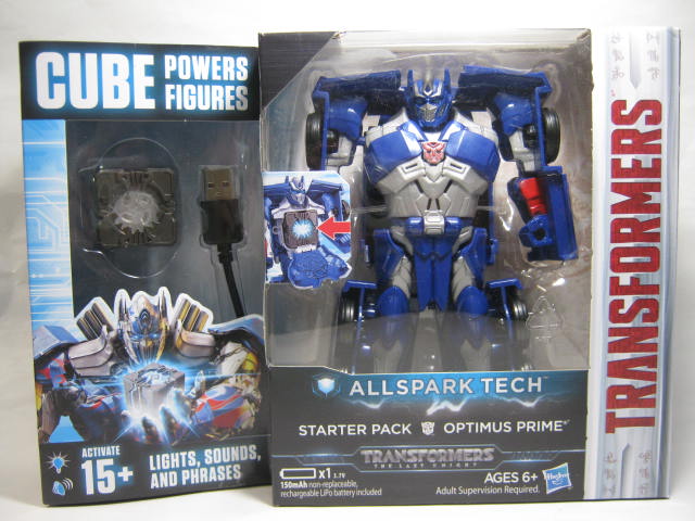 オールスパークテックは電子ギミックを内蔵したオールスパークキューブと、専用のTFで構成されるサブラインシリーズ。キューブとセットのスターターセットとTF単品のみの2種類が存在。TFにキューブをセットする事で、サウンド、発光ギミックが発動。オールスパークをセットして命を与えようというコンセプトの様です。キューブはモーションセンサー内蔵で、衝撃、変形等に反応してサウンドやセリフが発動。さらにキューブを別売りのTFに搭載すると認識して別のセリフを発動させる事も出来ます。