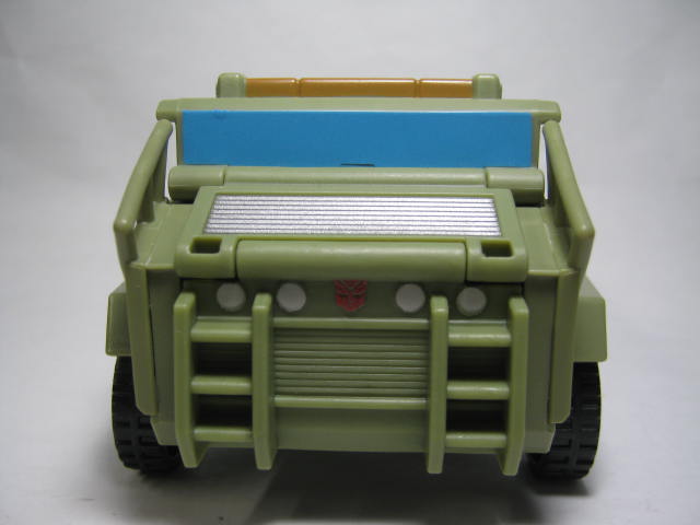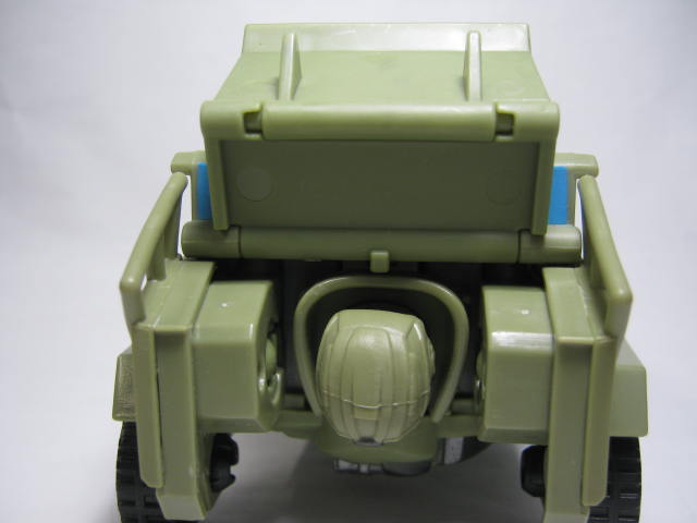 デフォルメされている為か、運転席付近が薄め。その為、荷台カバーがあるのか無いのかイマイチ、パッとしない。他のハウンドの玩具はランチャーが付いていた為、荷台カバーが無くビークルの見た目が劇中とは大幅に違っていただけに地味に重要。形状的にカバーありでしょうか。