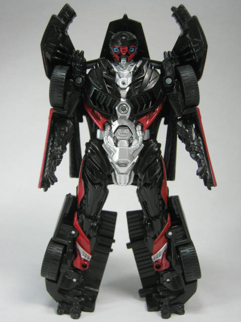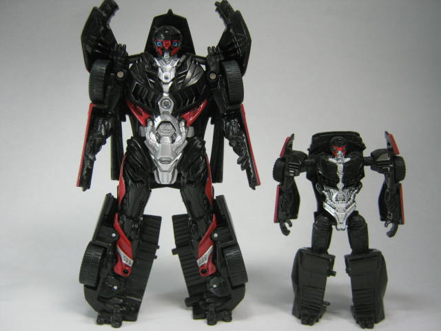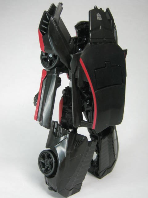 スティンガーとも比較。正直な所、ガワとロボットの造型を変えるだけでスポーツカータイプのTFならだいたい再現できてしまう変形パターン。良く言えば万能、悪く言えば面白みが無い。ワンステップ系は変形の面白みに重点を置いている系列なのでもうちょっと派手な変形が見たかったと言うのが正直な所。