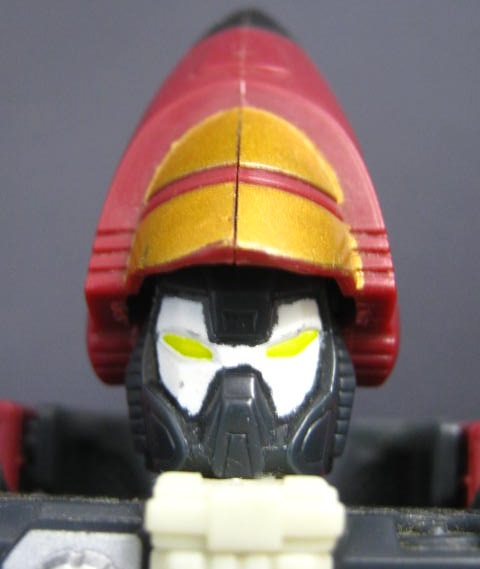 フェイスアップG1ライクなトンガリ頭だけで無く、パイロットのマスクの様な口も特徴的。G1版と違ってキャノピーの一部まで頭部に来ているのがユニーク。頭部に来ているのはダミーですけども。顔が白いのもG1アニメ由来かな?
