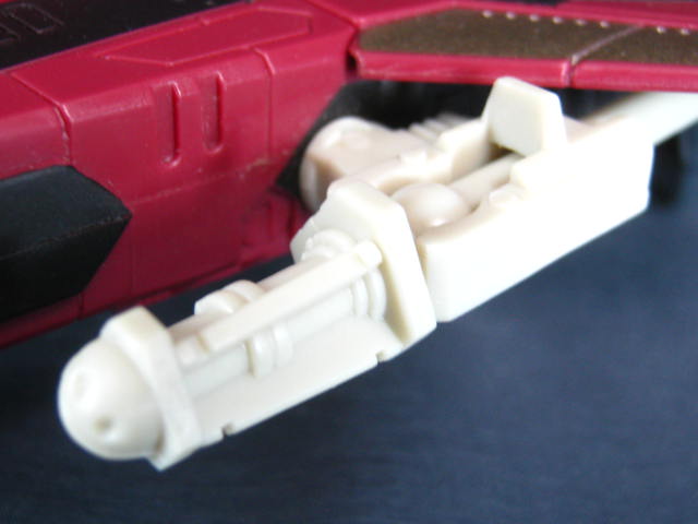 拳が無くバーニアがそのまま腕になっているのもユニーク。ミサイルが脚についていて、ロボットモードの武装としては使えないのも変わってます。ちょっと邪魔だけど。