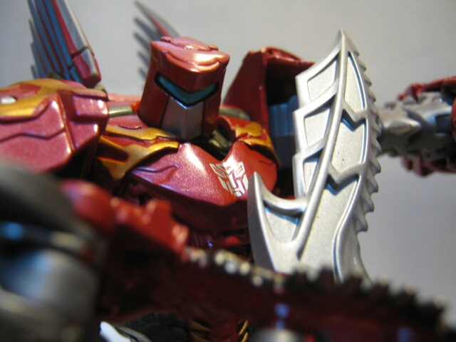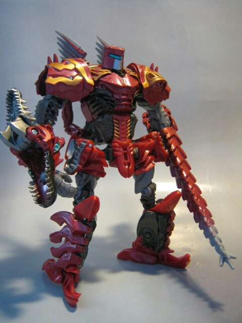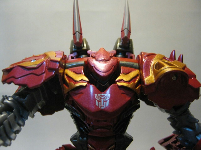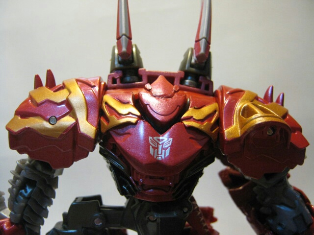 新勢力ダイノボットのメンバーの一人。強力な顎と戦車のような性格のダイノボット。戦槌が鳴らす雷のよつな地響きを立てて突進をしかける。胸にオートボットのエンブレムがあり、玩具的にはオートボットに分類されます。