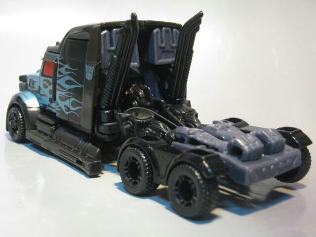 エメラルドグリーンでちいさく、ディセプティコンエンブレムがプリントされています。実はフロントグリルにはオートボットエンブレムがモールドされてるので、両方のエンブレムを持っている事に