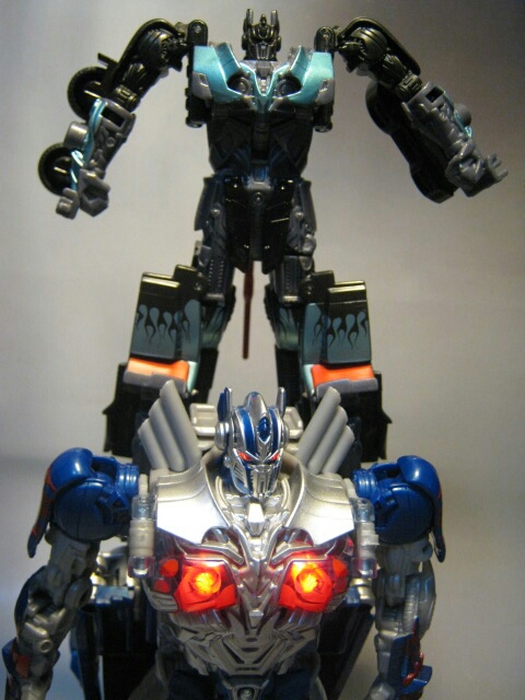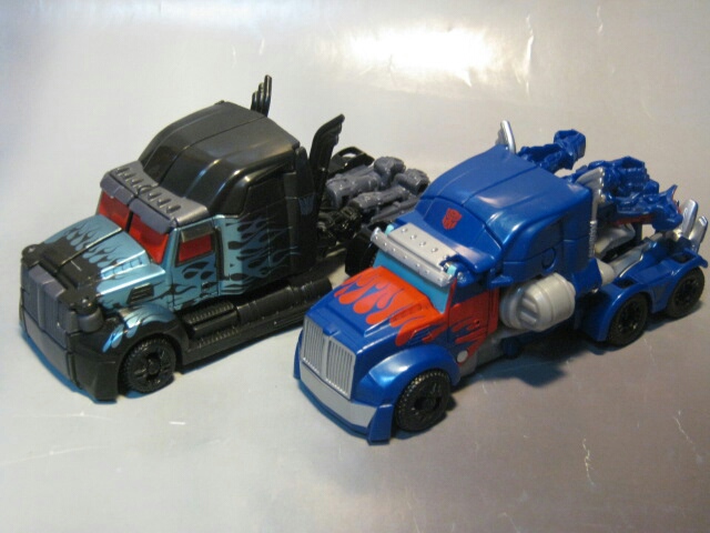 ワンステップチェンジャー版オプティマスと。ネメシスプライムは一回りおおきいですね。