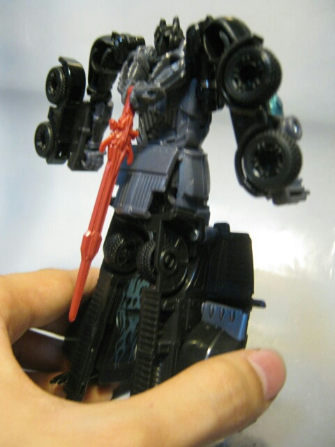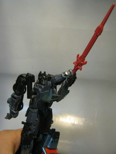 剣は劇中でオプティマスが手にしていた物に似たデザイン。ちっちゃな両腕で頑張って持ってます。