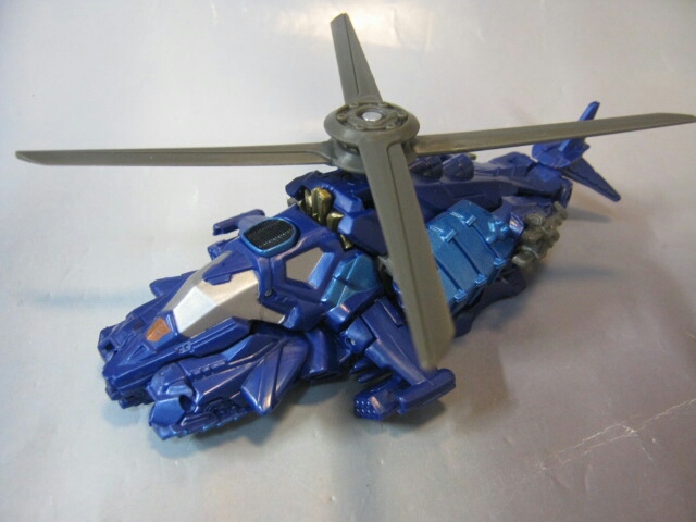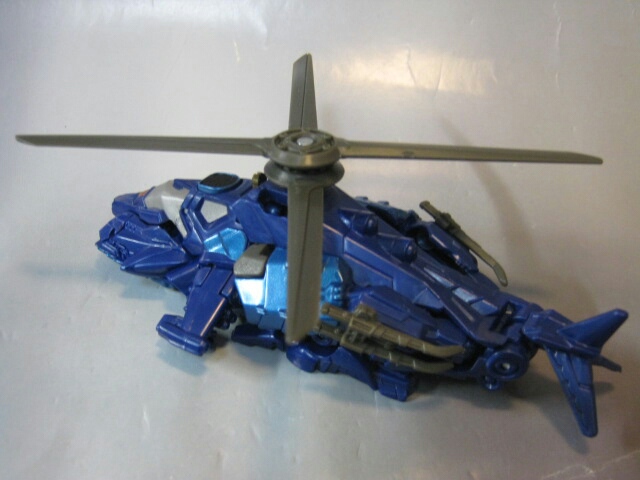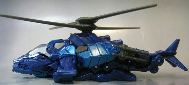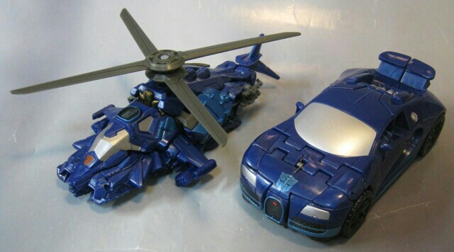 オートボットの新メンバー、ドリフト。劇中ではヘリコプターとスポーツカーのトリプルチェンジャーで状況に応じてそれぞれのビークルに変形していました。玩具ではデザイン的にも難しかったのか、別々の形で発売する事に。