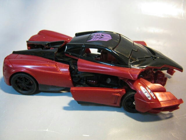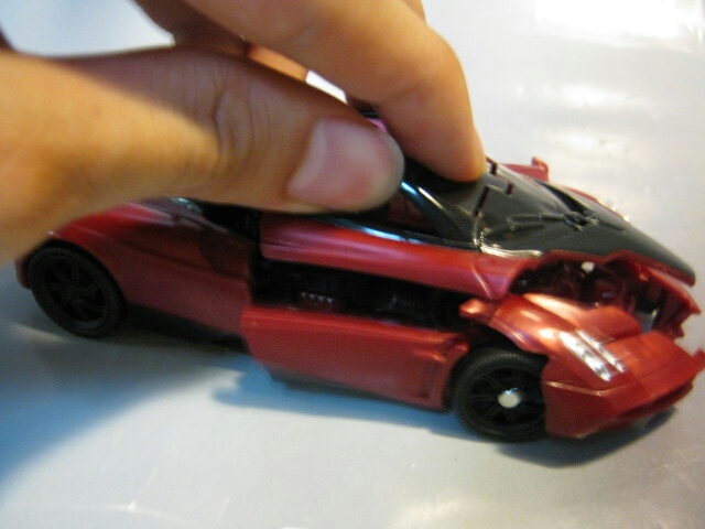 ドリフトのブガッティ・ヴェイロン程ではありませんが、恐ろしい程高価なスポーツカーだそうです。デカデカとしたディセプティコンのエンブレムが目立ちますね。ダークレッドの形成色がイカす!ただ、ちょっとカッチリ感が無く、車体後部がカタカタします。