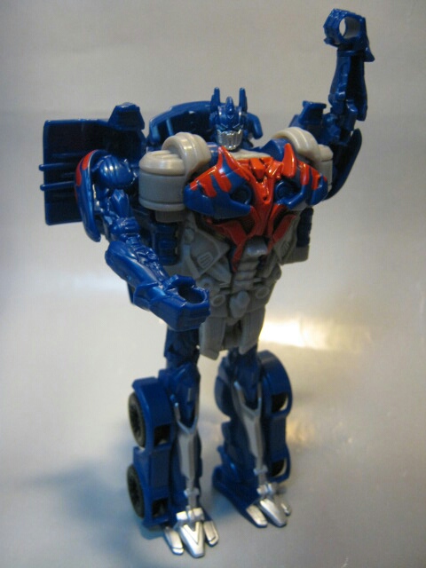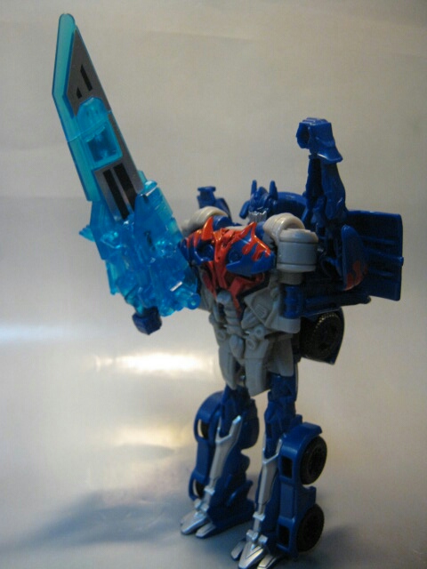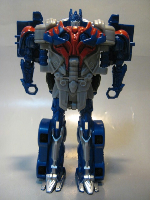正面より。実写3作目ダークサイドムーンから3年後の世界である4作目、ロストエイジでの新たな姿。オプティマスの象徴とも言えた胸の窓が消えた等、かなり従来のイメージから外れた斬新なデザインです。