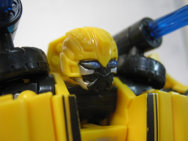 マルハナバチっぽくて好きですね。デザインも正直似ているとは言い辛く、開発時に資料が不足していた等の理由がある様ですが、この見た目の方が劇中デザインよりも好きだったりします。実写系にしてはビークルのガワが背中に配置されていないので後ろから見てもスッキリした印象。脚周りのクリアブルーがちょっとイマイチ。ココも黄色に塗装してあればいいのですがねー。