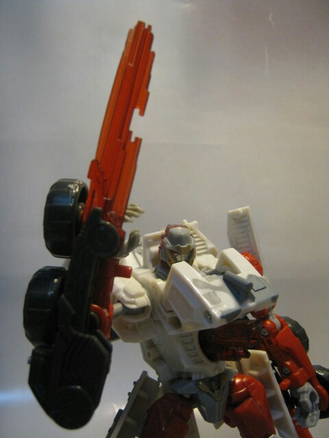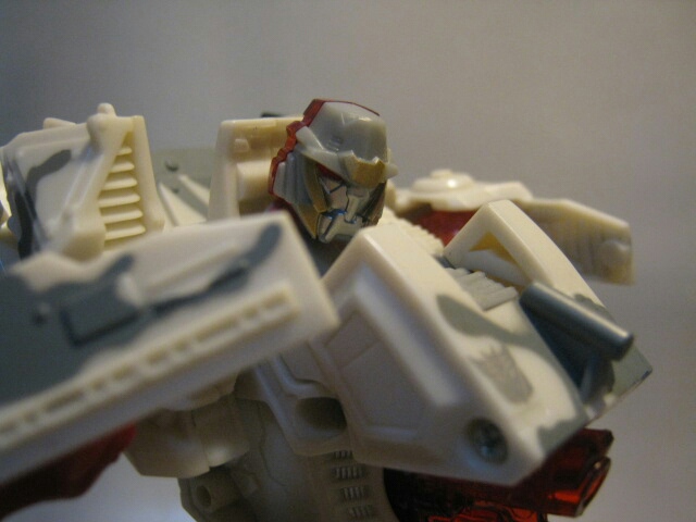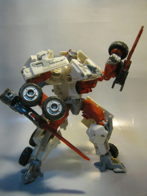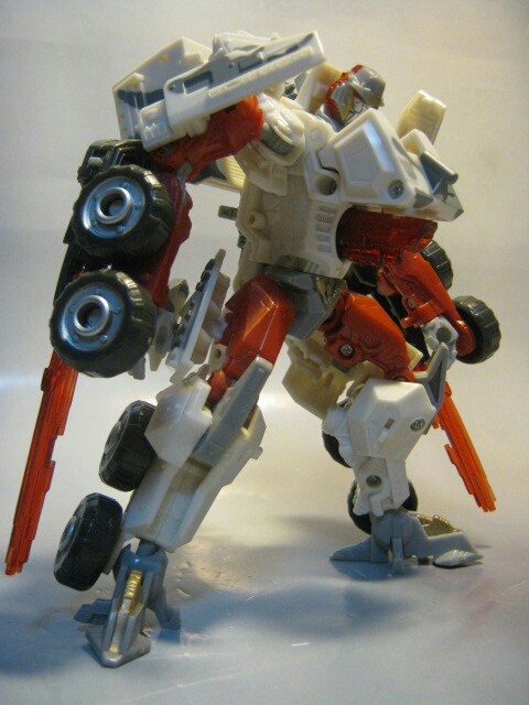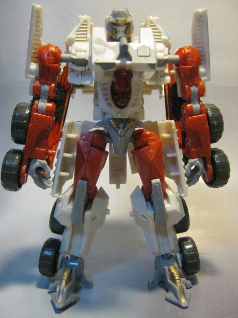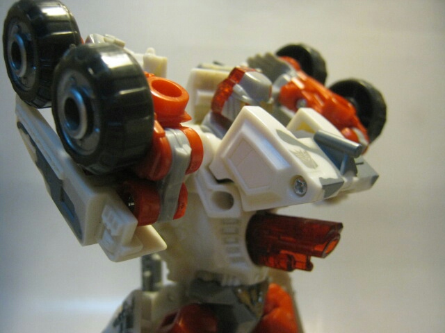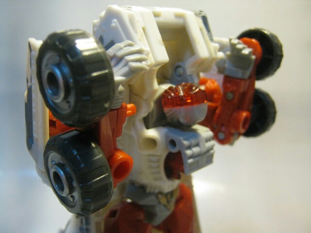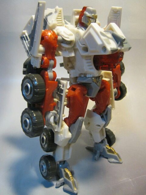 白とグレーのビークルから一転、真っ赤な腕や脚が特徴的な姿。四肢にちりばめられたタイヤがTFっぽくて好きです。