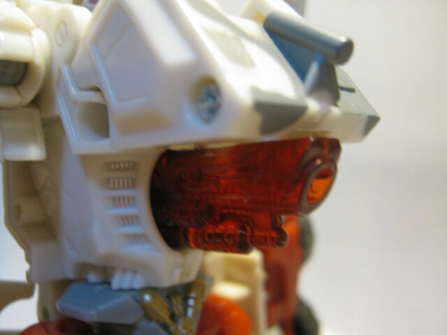 ギアでパーツが回転して頭、胸および腹のキャノンが連動してスライドします。