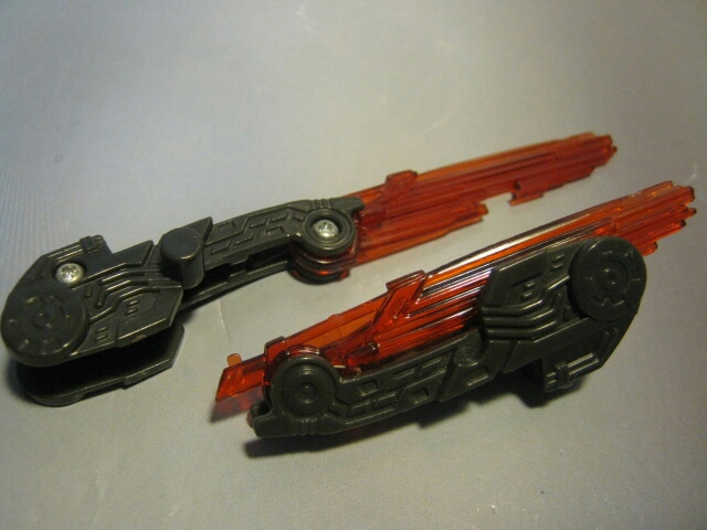スイッチを押す事でクリアレッドの刃がスプリングで展開。腕に装着する事が出来ます。