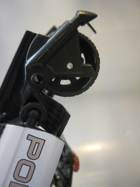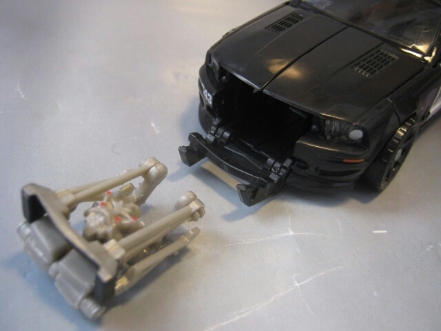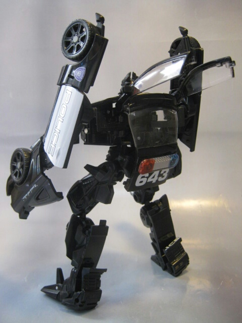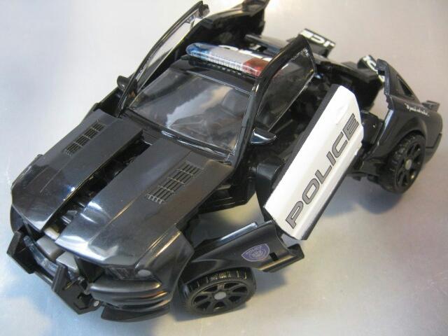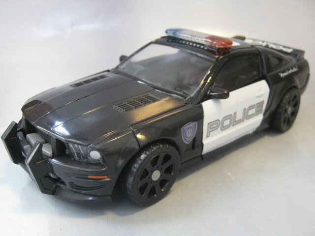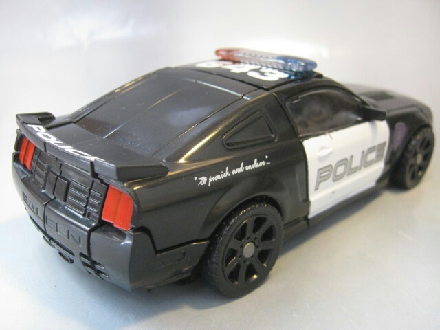 フォードマスタングベースのサリーン・S281を改造したパトカーに変形。パトランプはクリアパーツです。残念ながら後部窓はクリアパーツでは無いし塗装もされていません。市民の味方であるハズのパトカーなのにディセプティコンと言うのが当時衝撃的でしたねー。なんと言うか悪徳警官みたいな。黒のパトカーってのも日本じゃあまり見かけないのもありカッコいいですね。