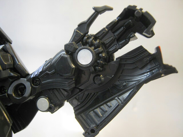 ビークルモードの側面が丸ごと腕になるのが楽しいです。クリーチャーチックなデザインだからこそ、何時もとは違う変形が見れるのもムービーシリーズの面白さかなーと私は思います。でもこのバリケードには一作目玩具の売りである連動変形、オートモーフは搭載されて無いぞ!残念!