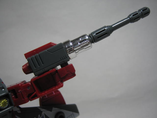 ロボットモードとんがり頭が特徴的。ダークレッドとグレーの地味目のカラーが好み。尾翼が足の支えにはならない為、他のジェットロンと比べてやや倒れやすい気がします。
