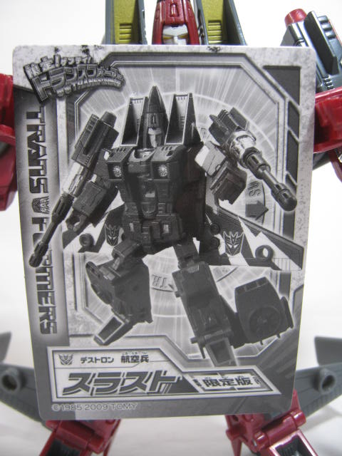 「BOTCON」の方が先にスラストを発売。こちらも新規の翼が付いていましたがこの「変形!ヘンケイ!」版とはまた別の形状でそちらは主翼にファンが付いている等、G1版に近い仕様になっていました。