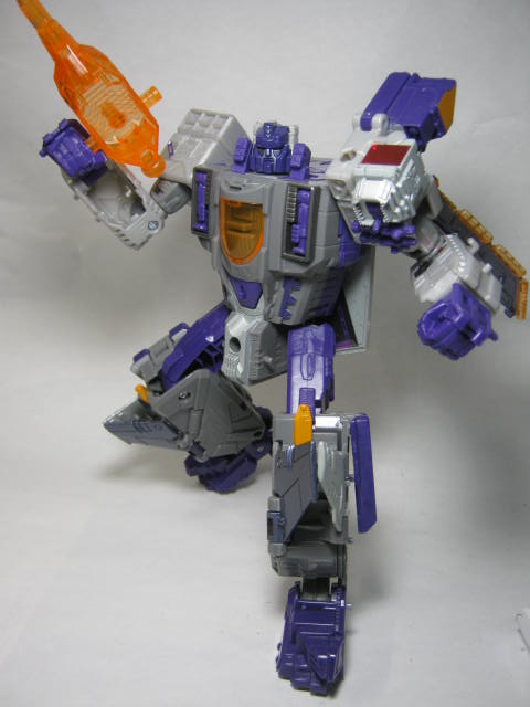 ロボットモードパワフルでどっしりした体系。オレンジのアクセントが良い感じ。特に背中のウィングのクリアオレンジがお気に入り。アルマダ版とは大きく見た目は異なりますが色と顔のおかげでそれっぽく見えます。アルマダ版が火力重視な印象だったのに対してコチラは単純にパワー重視なイメージ。テックスペック的にも火力は控えめでパワーが18(最大20)と高め。