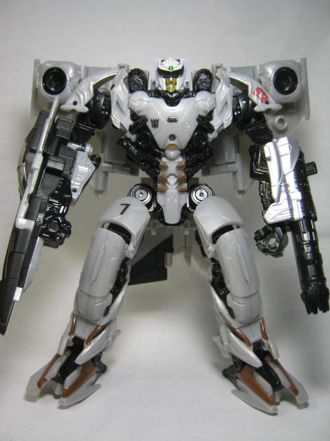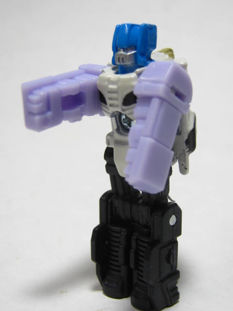 スラッグスリンガ―、ブレインストームと合体!頭部はデラックスクラスに丁度良いサイズになっているかと思われます。白系のボディが良く似合う。本体との接続には小型頭部を使っていますが、ダイキャストに塗装なので剥げないかちょっと気を使う。