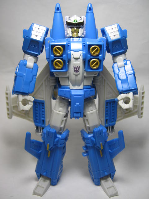 ロボットモード小型トランスフォーマーのタイタンマスターとしてサンダーウィングが登場。頭部、胴体、背中の顔がダイキャスト製になっており、ずっしりとした重みがあって良い感じ。脚パーツと頭部デザインがファングリーの流用の様です。
