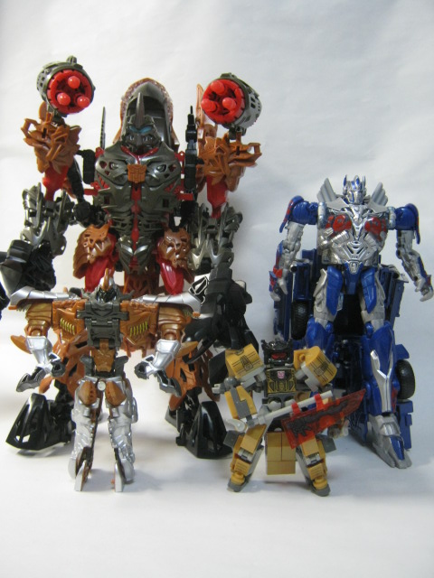 バトルコマンド版と比べると今度はオプティマスが大きいかな?デラックスクラスで新デザインのオプティマスの玩具が出てたら良い感じかもしれない。しかし何故実写版グリムロックの玩具はどれも銅色なんでしょうかね・・・。