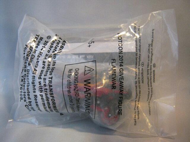 ボットコン限定品はフラッグシップアイテムであるボックスセット以外には基本的にパッケージは存在せず説明書、テックスペックカードと一緒にビニール袋にくるまれて販売されます。ちなみにフレイムウォーはボックスセットを会場で買う事で貰えるフリービートイとして配布されました。