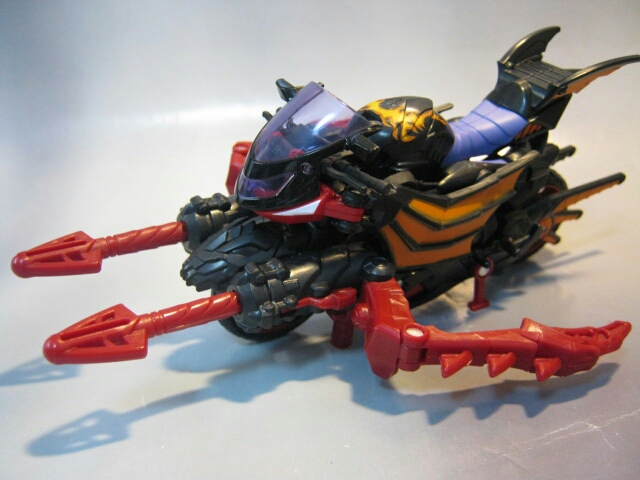 魚のヒレの様なモールドとその名の通り炎の様な模様が特徴的。スタンドを起こしてビークルモードでも立たせられます