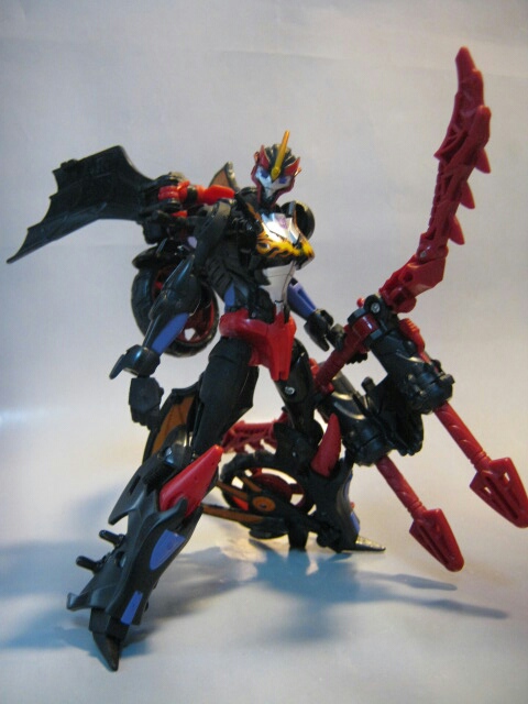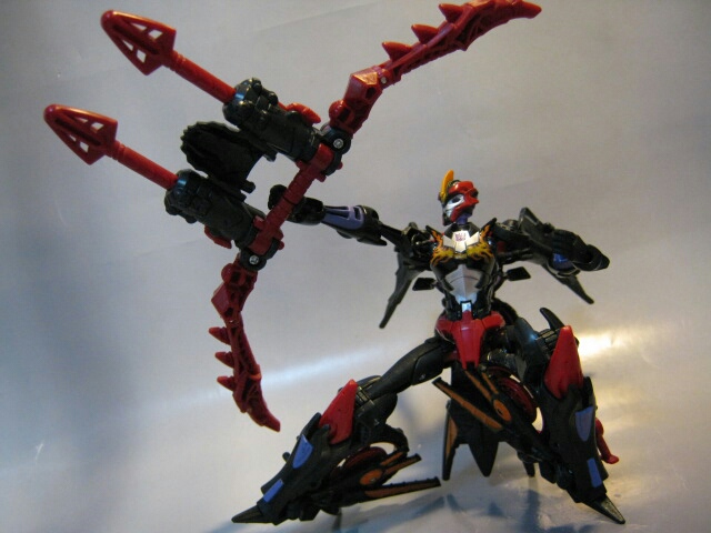 女性型TFとしての評価も高いプライムアーシー型なので見た目も良く、ハンター版なので元ネタ同様に弓矢が付属するだけでなく、ワイルドな見た目がフレイムウォーにピッタリですね。