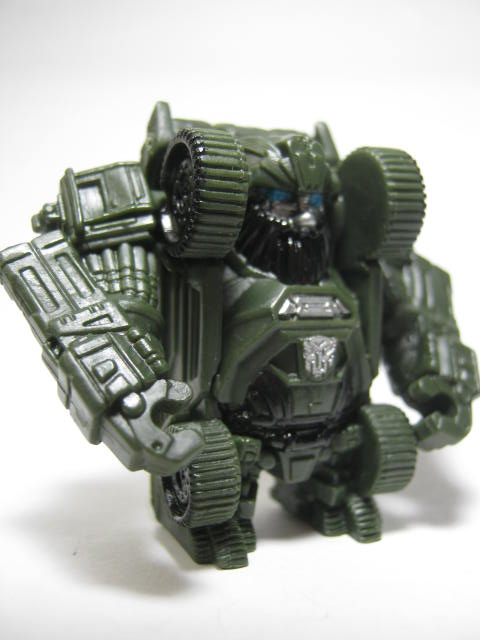 ロボットモードおひげが素敵な重武装のタフガイ。口は悪いが頼れるヤツ。腕を開いて先端のパネルをめくれば変形完了。もしゃもしゃのひげが特徴の顔もばっちり再現。腕が結構大きい。短足なのでおデブ感がそこそこ出ていて結構良い感じ。背中のカバーにタイヤのモールドがあるのがちょっと気に入っている。
