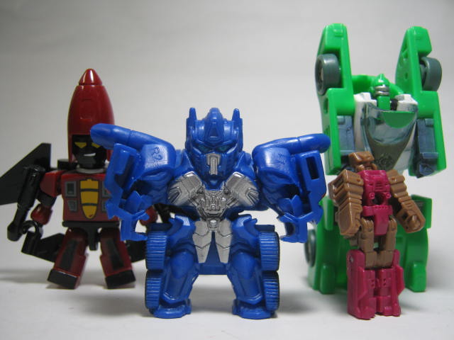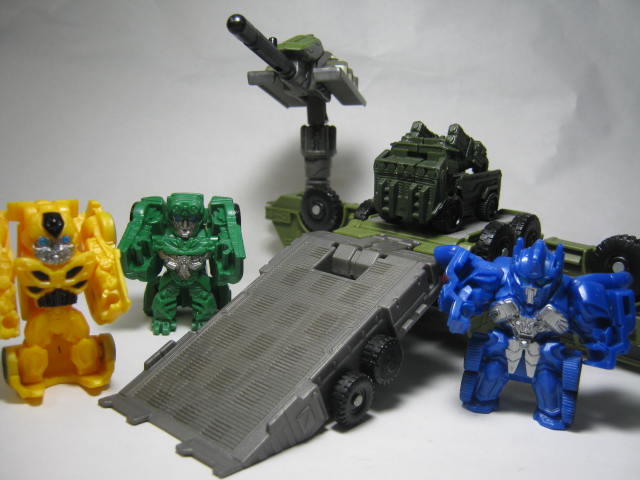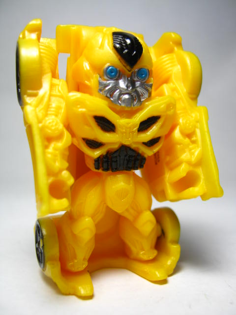 可動は全キャラ、腕が可動。ボールジョイントで可動するキャラと軸可動のキャラがいます。背中のガワを外せばバンブルビーは腰も回ります。また、拳の穴はEZコレクション等と同じな為、武器を持たせる事が出来ます。
