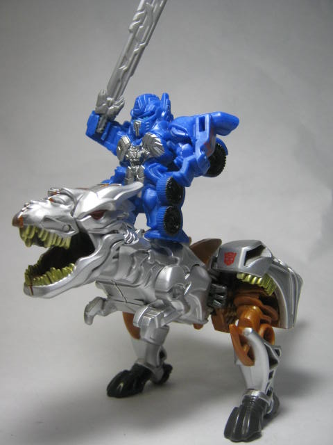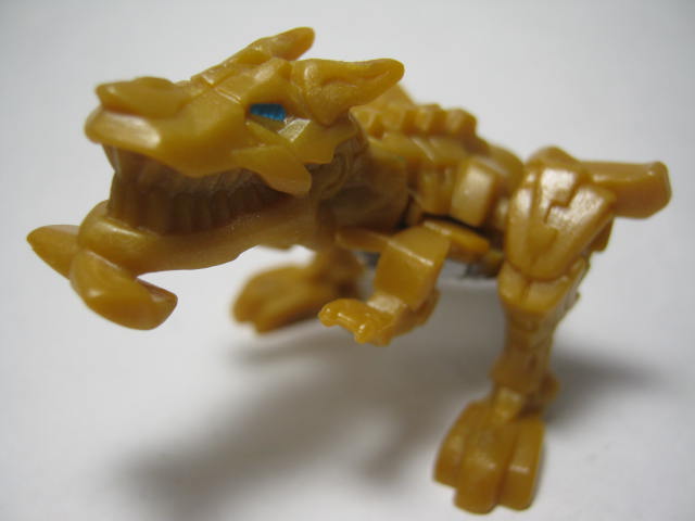 ダイノモードティラノサウルっぽい生き物に変形。劇中では銀色というかガンメタというか、金属系の色でしたがロストエイジ時の玩具同様にオレンジ色で登場。せめて牙くらいは塗装して欲しかった気もする。ロボットモードのつま先が顎に来ている為、ちょっと顔が変な事に。