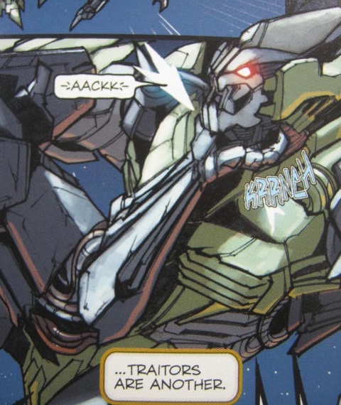 1作目の後日譚である「レイン・オブ・スタースクリーム」では、生き残ったスタースクリームによるディセプティコンの統治へ不満を持ち、反乱を起こしたドレッドウィング側のメンバーの一人として登場。玩具オリジナルキャラでも比較的、玩具に近い見た目で登場するコミック版にしては珍しく、大幅に異なる外見。どちら様ですか?