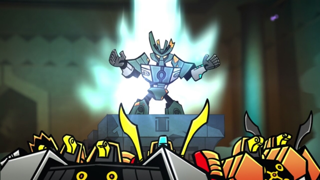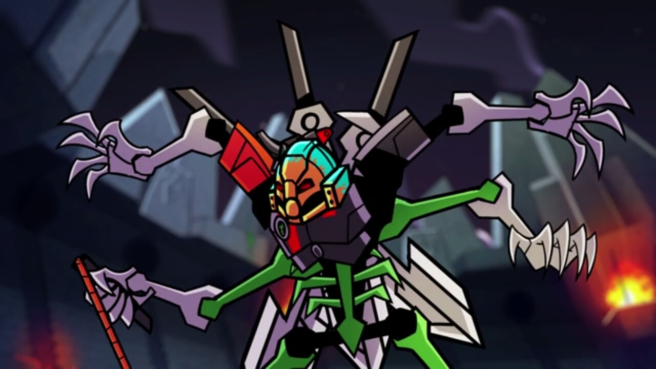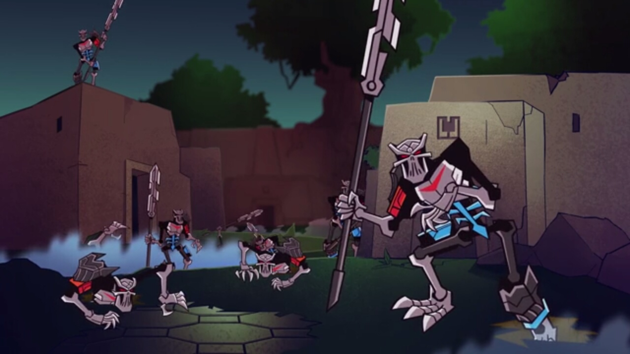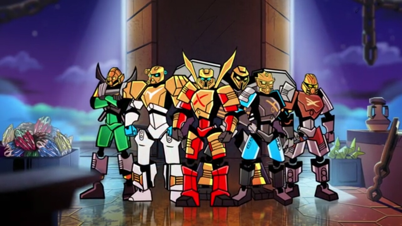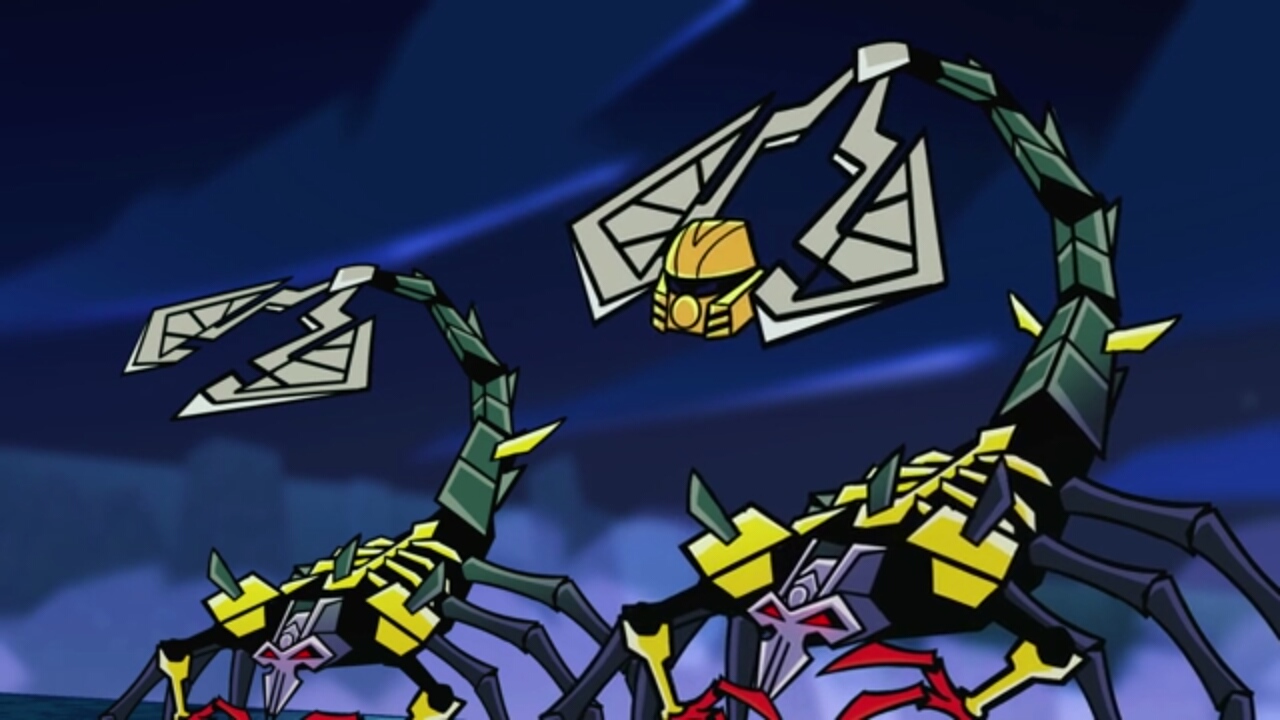 スカルバッシャーが表れてオヌーを倒しマスクを奪いパワーアップするが、残りの五人が力を合わせ、突破。ついにスカルグラインダーとの対決である。スカルグラインダーは創造のマスクを装備してパワーアップ。エキムはトーア達に時間を稼ぐ様に頼むのであった。