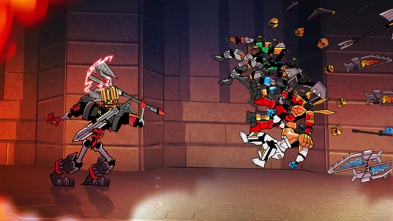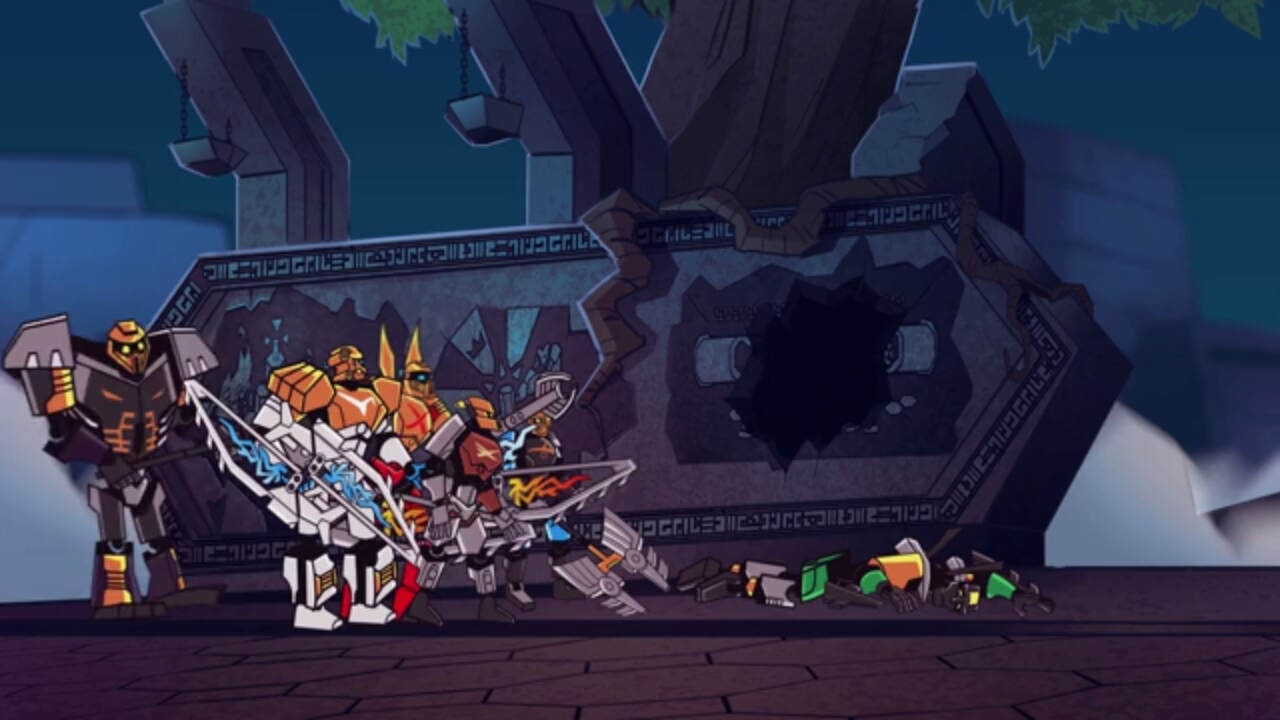 奪ったゴールデンマスクでパワーアップしたスカルスライサーであったが、タフー、コパカ、オヌーのコンビネーションで撃破。マスクを取り戻す。しかしアリーナは崩壊し6人とも生き埋めにされてしまうのであった。