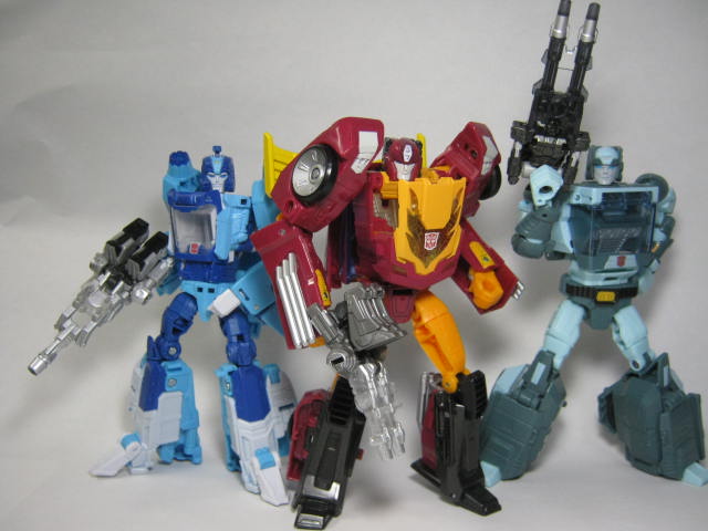 ザ・リバースで披露したターゲットマスター3人。ブラ―だけターゲットマスター別売りでちょっと浮いていますがコレをやりたくて買った所あります。デストロンターゲットマスターはスラッグスリンガ―3名だけでスカージ、サイクロナスの分のターゲットマスターが出ていなかったり、サイバトロンはブランカ―らのターゲットマスターしか発売しなかったりと中途半端さが否めませんが、チーム単位で揃えられたのは嬉しい所。