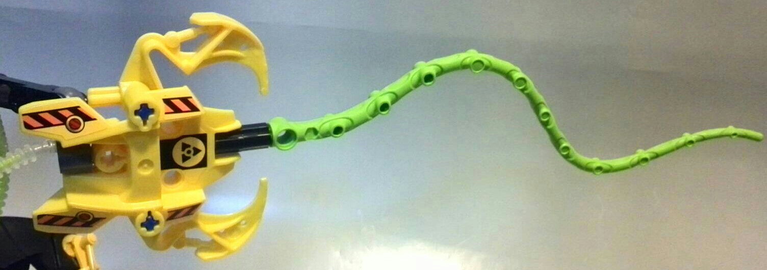 右手の武器は触手。柔軟素材で出来ているのでグニグニ曲がります。あまり曲げすぎるとクセが付くので要注意。また端には黄色のツメを装備。