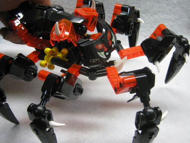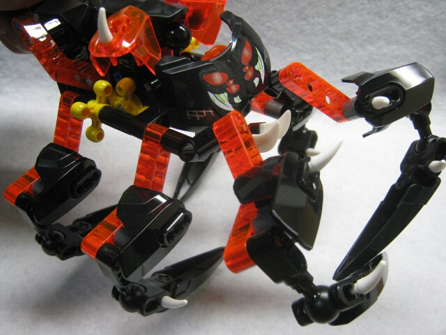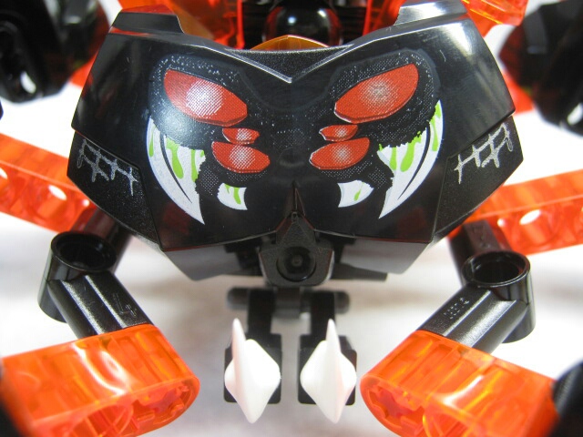 スパイダーと言いつつ脚が六本しかありませんが、バイオニクルじゃ良くある事だし今まで蜘蛛をモチーフとしたモノは四本脚だったりした事を思えば良い方かと。口回りのキバまで再現されてます。