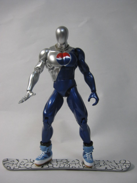 正面ペプシコーラのマスコットキャラクターとして1996年から登場。NASAが研究していた液体金属が意思を持って活動を開始。近くにいた研究者と合体し、彼が飲んでいたペプシコーラの影響を受けて誕生した。身長190cm、体重95kg。ペプシコーラを求める人々の元に向かい、分け与えて癒しを与える事を使命としている。