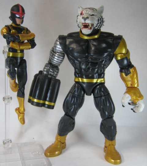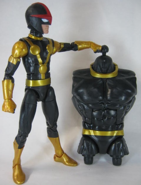 2010年頃に新たに登場した、サム・アレキサンダーの変身するノヴァを忠実に再現。金の成型色と塗装が眩しい。まだ若手のヒーローということで、アルティメット版スパイダーマンなどの若手ヒーローで仕様された小柄な素体をベースに、胴体や腕やなどが新規で作られています。金の部分はメタリック成型色が多いのでその内割れないか心配な所はありますね。